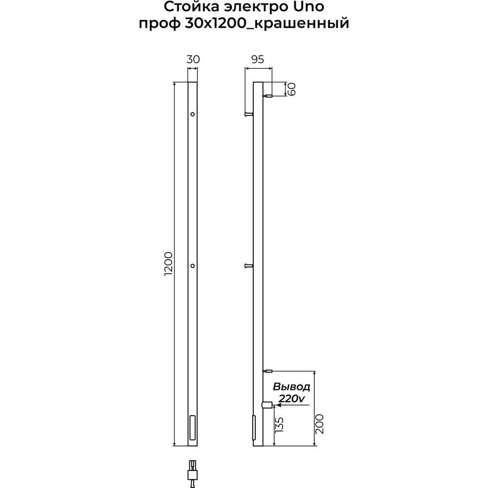 Полотенцесушитель электрический Terminus Стойка UNO проф 120, белый