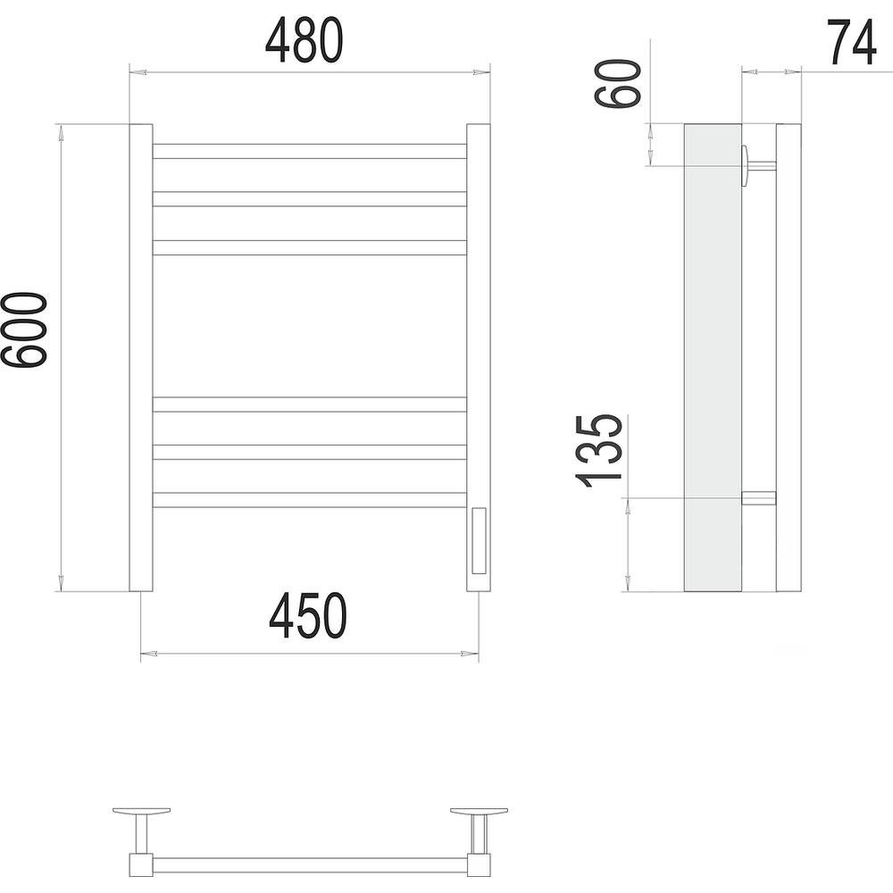 Полотенцесушитель электрический арт.: 4670078527516. Бренд: Terminus. Тип подключения: справа. Материал: конструкционная сталь. Теплоноситель: греющий кабель. Форма: лесенка. 3 режима работы таймера.