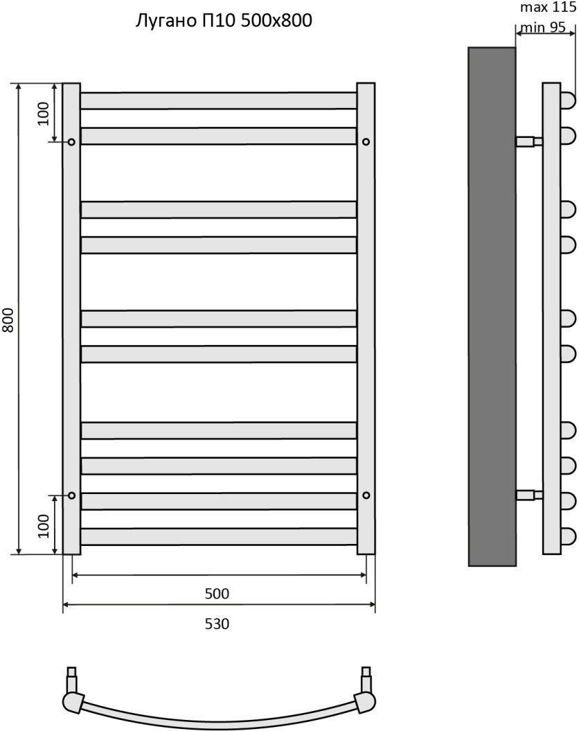 Лугано П10 500х800 Полотенцесушитель Aquatek