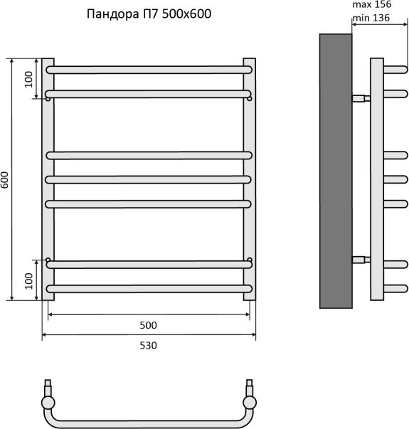 Пандора П7 500х600 Полотенцесушитель Aquatek