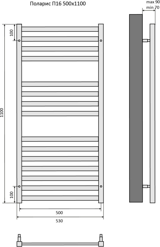 Поларис П16 500х1100 Полотенцесушитель Aquatek (черный муар)