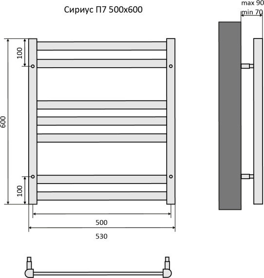 Сириус П7 500х600 Полотенцесушитель Aquatek (черный муар)