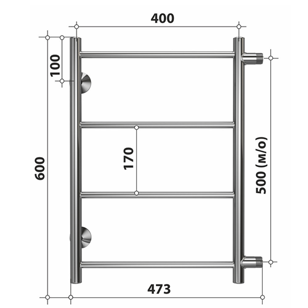Полотенцесушитель водяной (боковое подключение) Stelmix 60x40 см, прямой