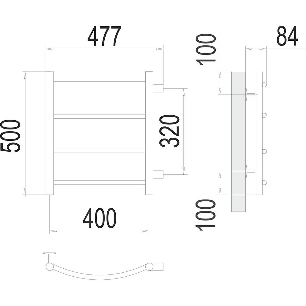 Комплектация: полотенцесушитель, кран маевского, заглушки, крепления;