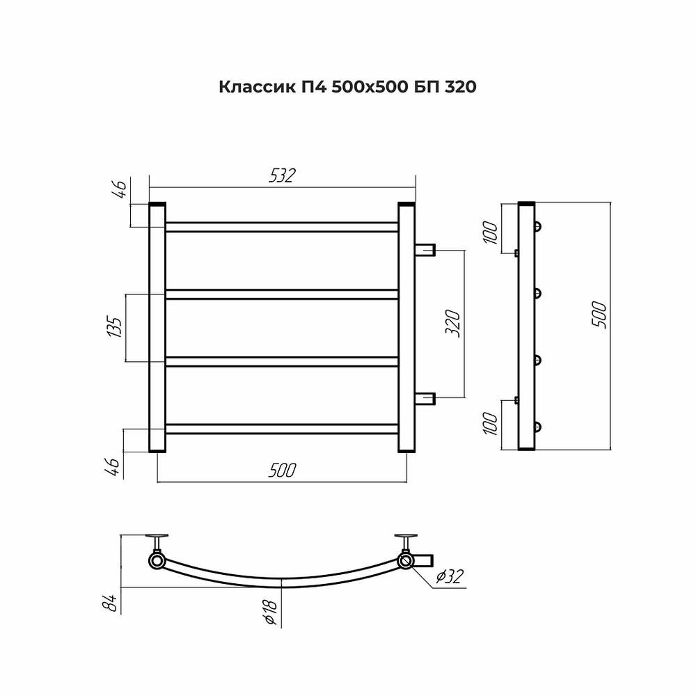 Полотенцесушитель водяной (боковое подключение) Terminus Классик П4 50х50