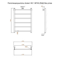 Полотенцесушитель Аспект НК 1 80*40 (ЛЦ6) без углов. Коллекция: Аспект серия 1. Тип: водяной. Форма: лесенка. Межосевое расстояние (см): 40. Группировка перекладин: равно отдалённые. Материал: нержавеющая сталь AISI 304. Подключение: к системе горячего водоснабжения; к системе центрального отопления.