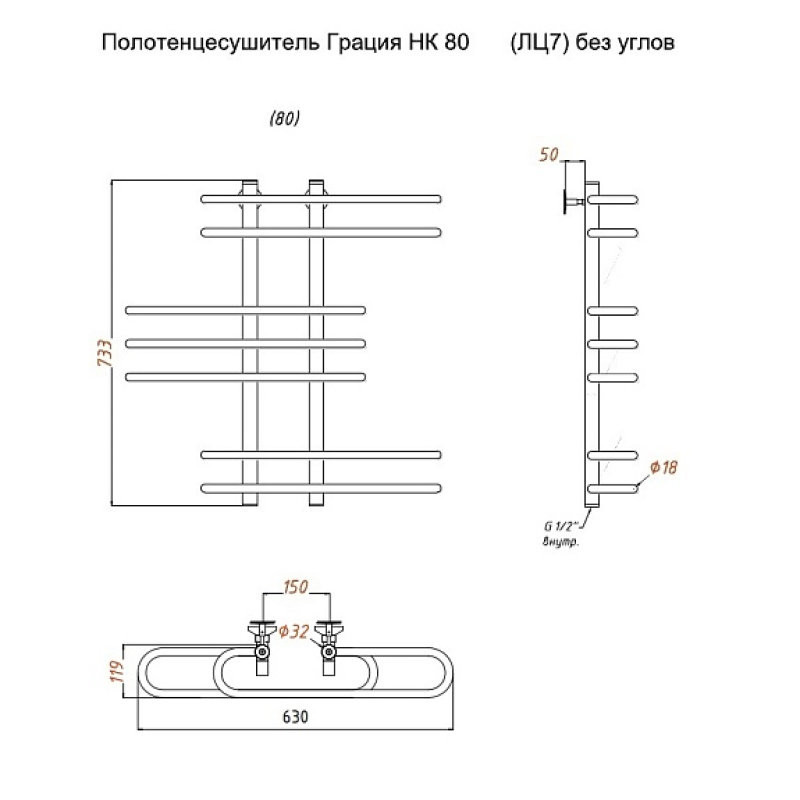 Полотенцесушитель Грация НК 80*60 (ЛЦ7) без углов. Коллекция: Грация. Тип: водяной. Форма: лесенка. Межосевое расстояние (см): 15. Группировка перекладин: 2+3+2. Материал: нержавеющая сталь AISI 304. Подключение: к системе горячего водоснабжения; к системе центрального отопления.
