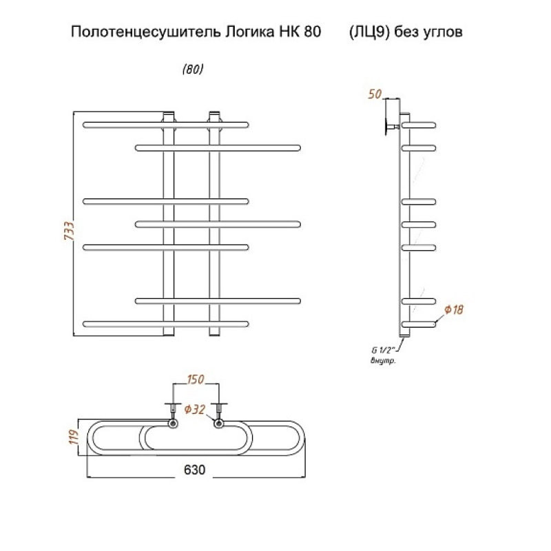 Полотенцесушитель Логика НК 80*60 (ЛЦ9) без углов. Коллекция: Логика. Тип: водяной. Форма: лесенка. Межосевое расстояние (см): 15. Группировка перекладин: 2+3+2. Материал: нержавеющая сталь AISI 304. Подключение: к системе горячего водоснабжения; к системе центрального отопления.