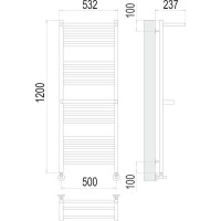 Комплектация: полотенцесушитель, заглушки, кран маевского, крепления, эксцентрики, отражатели, Угловое соединение ГхШ 3/4 на 1/2;