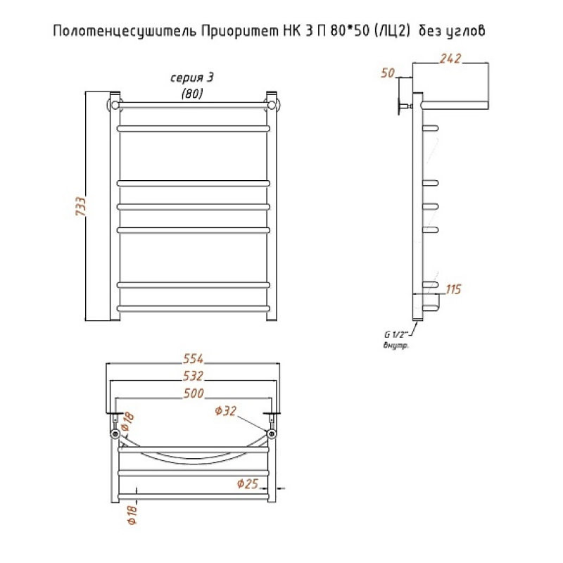 Полотенцесушитель Приоритет НК 3 П 80*50 (ЛЦ2) без углов. Коллекция: Приоритет серия 3. Тип: водяной. Форма: лесенка. Межосевое расстояние (см): 50. Группировка перекладин: 2+3+1. Материал: нержавеющая сталь AISI 304. Подключение: к системе горячего водоснабжения; к системе центрального отопления.