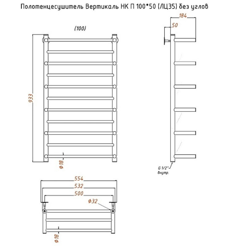 Полотенцесушитель Вертикаль НК П 100*50 (ЛЦ35) без углов. Коллекция: Вертикаль. Тип: водяной. Форма: лесенка. Межосевое расстояние (см): 50. Группировка перекладин: равно отдалённые. Материал: нержавеющая сталь AISI 304. Подключение: к системе горячего водоснабжения; к системе центрального отопления.