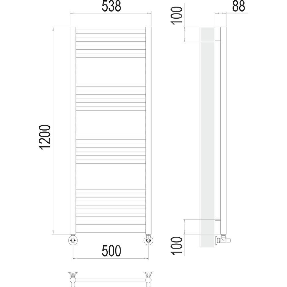 Комплектация: полотенцесушитель, кран маевского, заглушка, крепление, эксцентрики, отражатели, комплект вентилей;