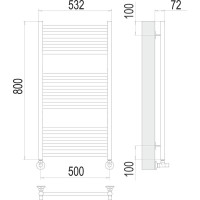 Комплектация: полотенцесушитель, заглушки, кран маевского, крепления, эксцентрики, отражатели, Угловое соединение ГхШ 3/4 на 1/2;