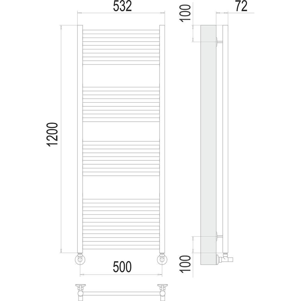 Комплектация: полотенцесушитель, заглушки, кран маевского, крепления, эксцентрики, отражатели, Угловое соединение ГхШ 3/4 на 1/2;