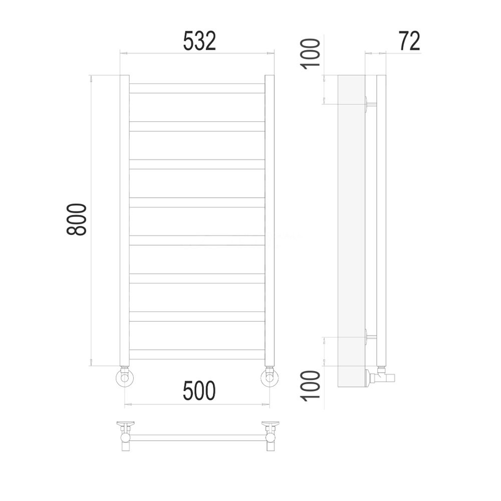 Комплектация: полотенцесушитель, кран маевского, заглушки, крепления;
