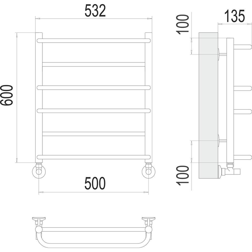 Комплектация: полотенцесушитель, кран маевского, заглушки, крепления;