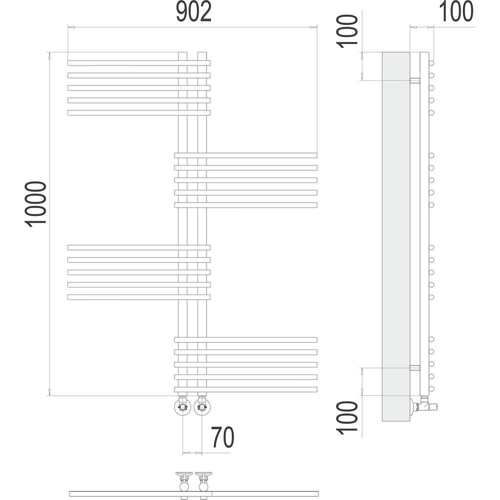 Комплектация: полотенцесушитель, кран маевского, заглушка, крепление, эксцентрики, отражатели, комплект вентилей;