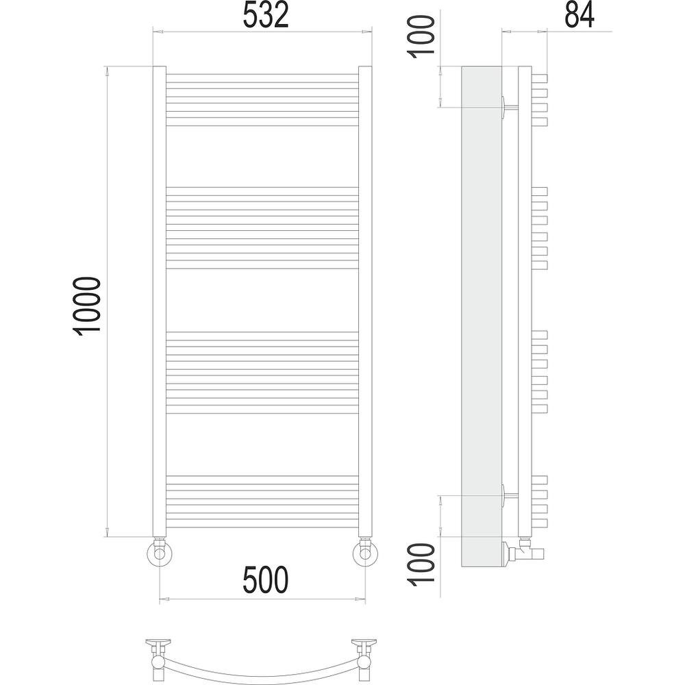 Комплектация: полотенцесушитель, заглушки, кран маевского, крепления, эксцентрики, отражатели, Угловое соединение ГхШ 3/4 на 1/2;