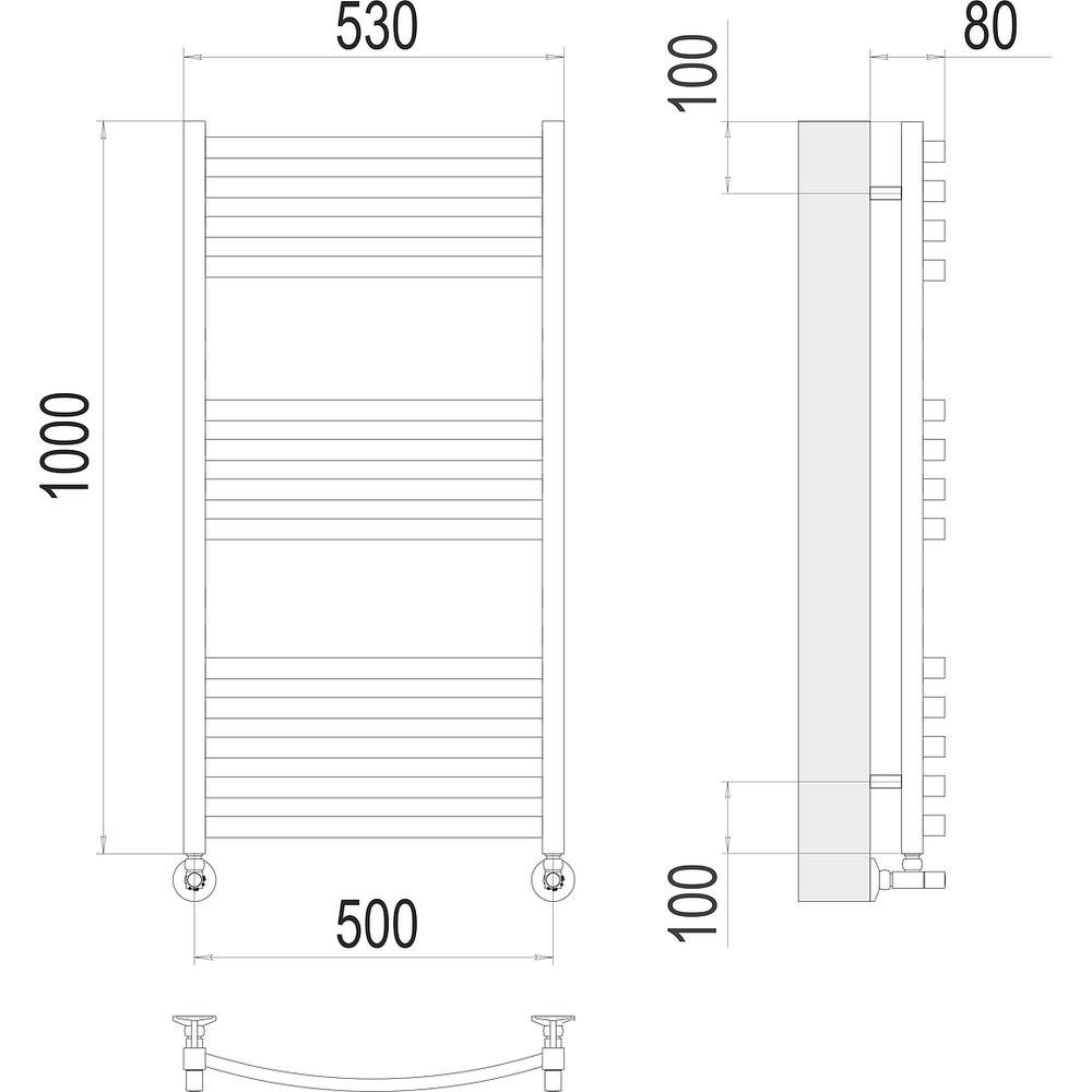 Комплектация: полотенцесушитель, кран маевского, заглушка, крепление, эксцентрики, отражатели, комплект вентилей;