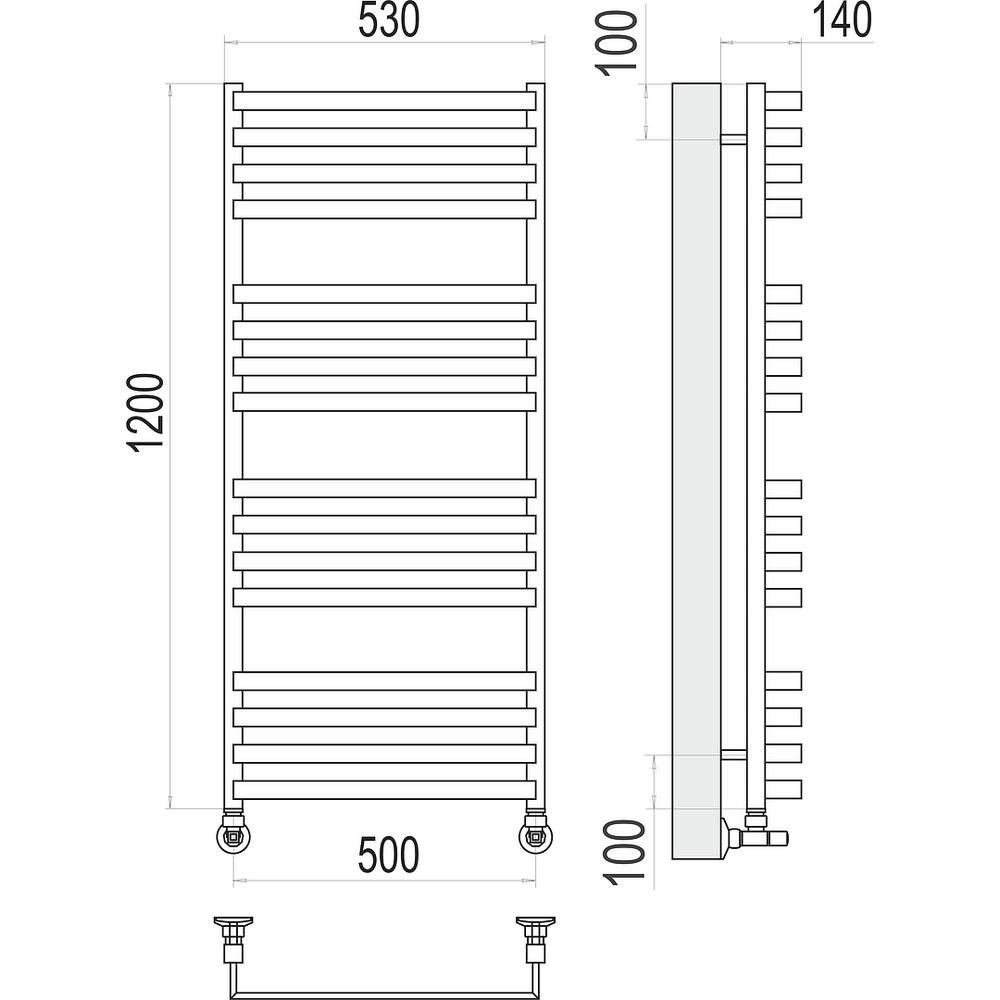 Комплектация: полотенцесушитель, кран маевского, заглушка, крепление, эксцентрики, отражатели, комплект вентилей;
