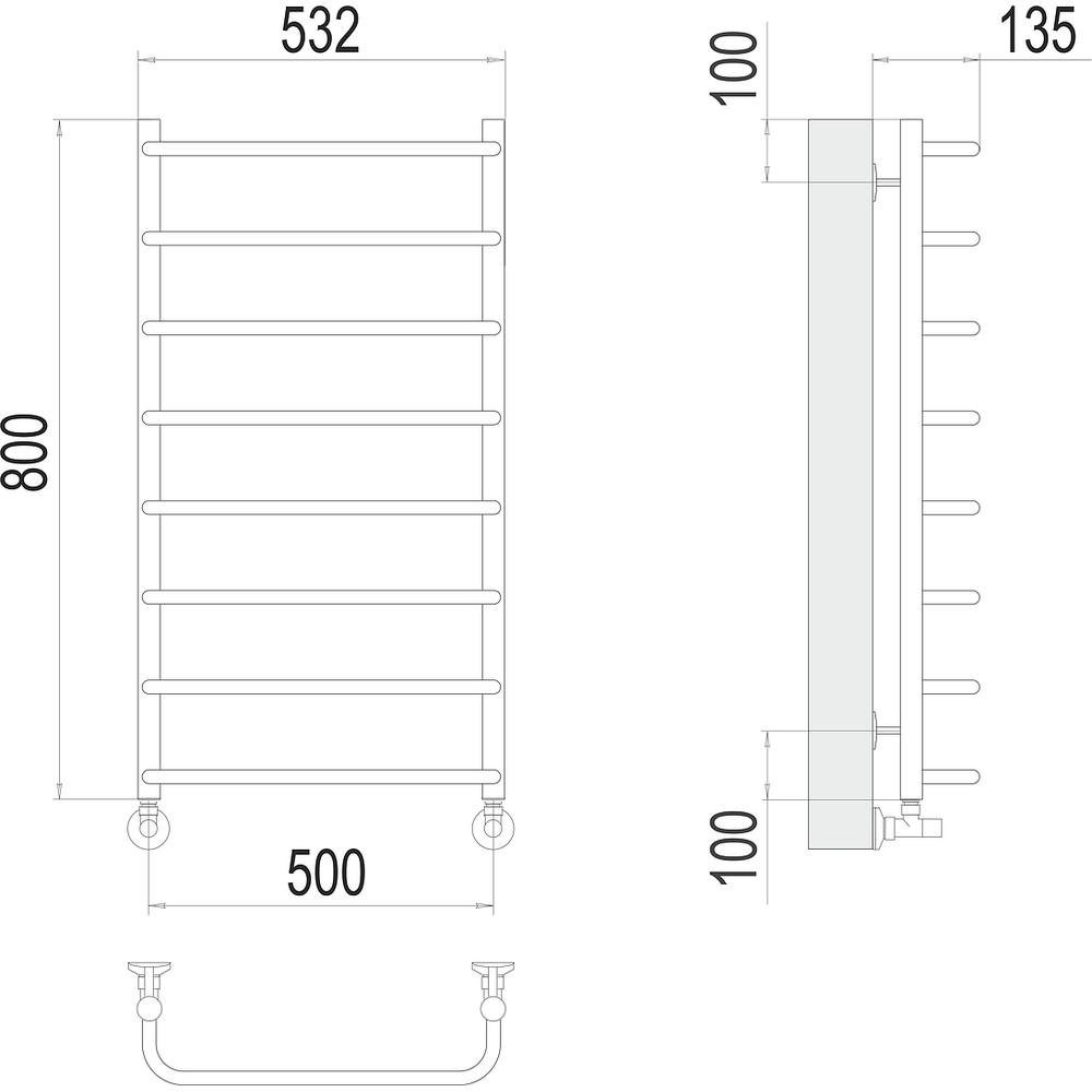Комплектация: полотенцесушитель, кран маевского, заглушки, крепления;
