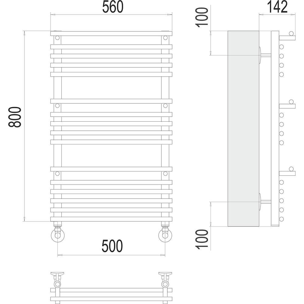 Комплектация: полотенцесушитель, заглушки, кран маевского, крепления, эксцентрики, отражатели, Угловое соединение ГхШ 3/4 на 1/2;