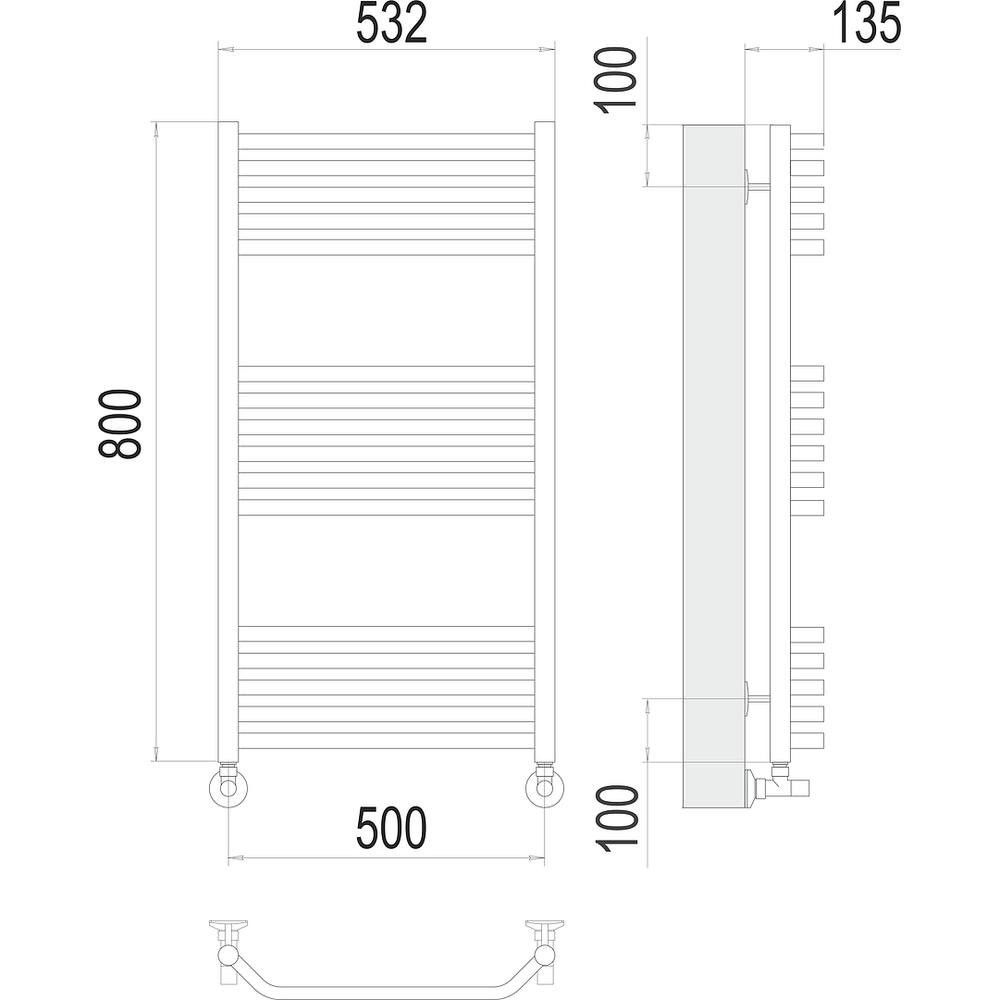 Комплектация: полотенцесушитель, заглушки, кран маевского, крепления, эксцентрики, отражатели, Угловое соединение ГхШ 3/4 на 1/2;
