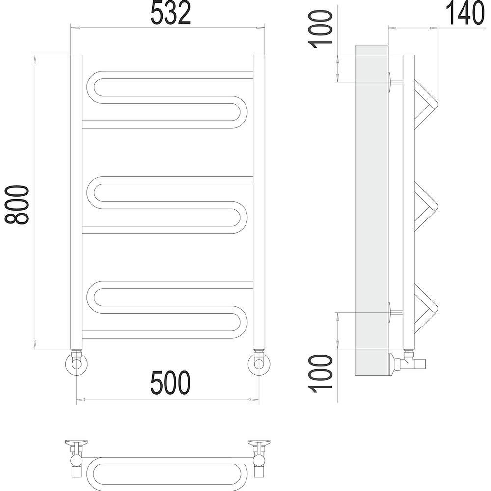 Комплектация: полотенцесушитель, кран маевского, заглушки, крепления;