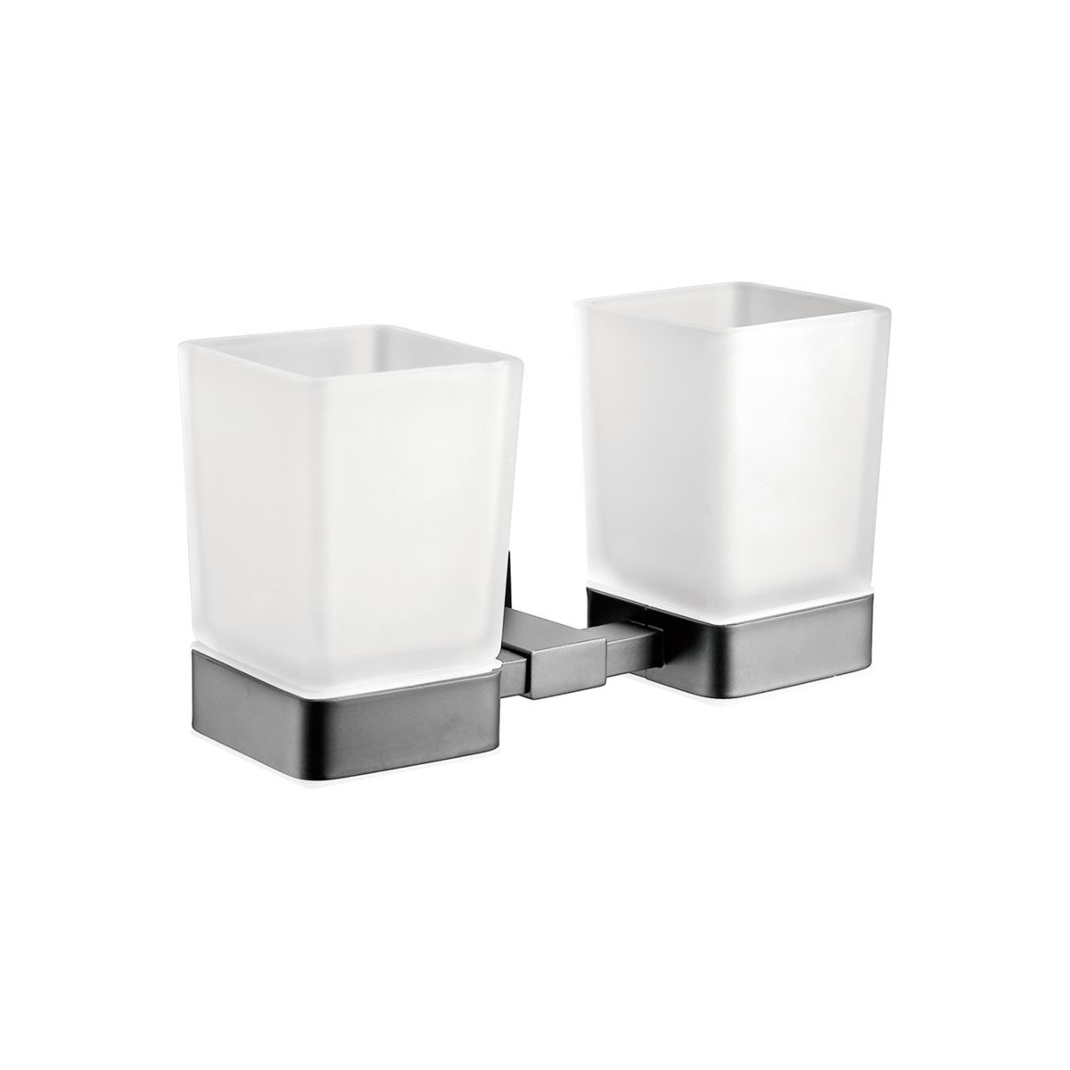 Стакан для ванной комнаты двойной BELZ B90408, вороненая сталь
