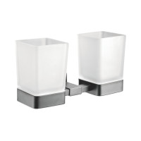 Стакан для ванной комнаты двойной Shevanik SG5622T, оружейная сталь. Монтаж: настенный. Материал: латунь/стекло.