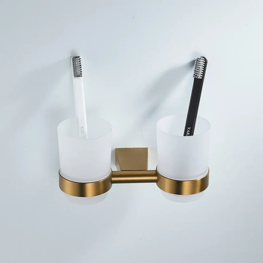Двойной стакан для ванной комнаты Shevanik SG5722G в современном цвете "золотой сатин" (брашированное золото) — это функциональное и стильное решение для организации пространства в вашей ванной комнате. Элегантная конструкция сочетает в себе прочный держатель из нержавеющей стали и два практичных стакана из матового стекла, создающих современный и изысканный образ. Каждый стакан объемом 200 мл обеспечивает достаточно места для хранения зубных щеток и паст, а двойная конструкция позволяет удобно организовать пространство для всей семьи. Современный минималистичный дизайн делает этот аксессуар универсальным элементом интерьера, который гармонично впишется в любой стиль ванной комнаты. Настенный монтаж обеспечивает простоту установки, а комплект, включающий как саморезы, так и дюбели, позволяет выбрать оптимальный способ крепления в зависимости от типа стены. Двойной стакан Shevanik не только практичен в использовании, но и служит стильным акцентом в оформлении вашей ванной комнаты, подчеркивая безупречный вкус владельца.