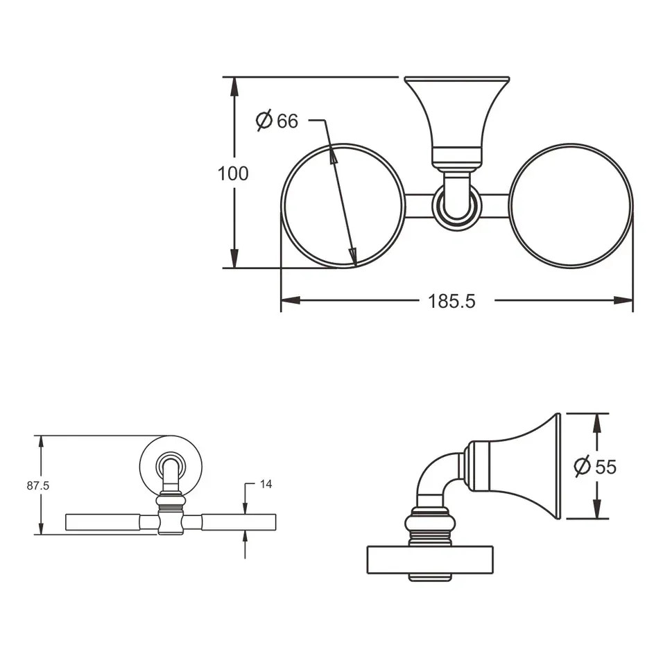 Стакан двойной для ванной комнаты Rose RG1222, хром