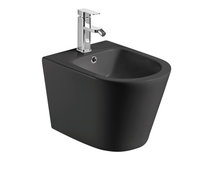 AQM2101MB Биде подвесное, цвет черный матовый, с отв под смеситель, с переливом 515x360x345мм
