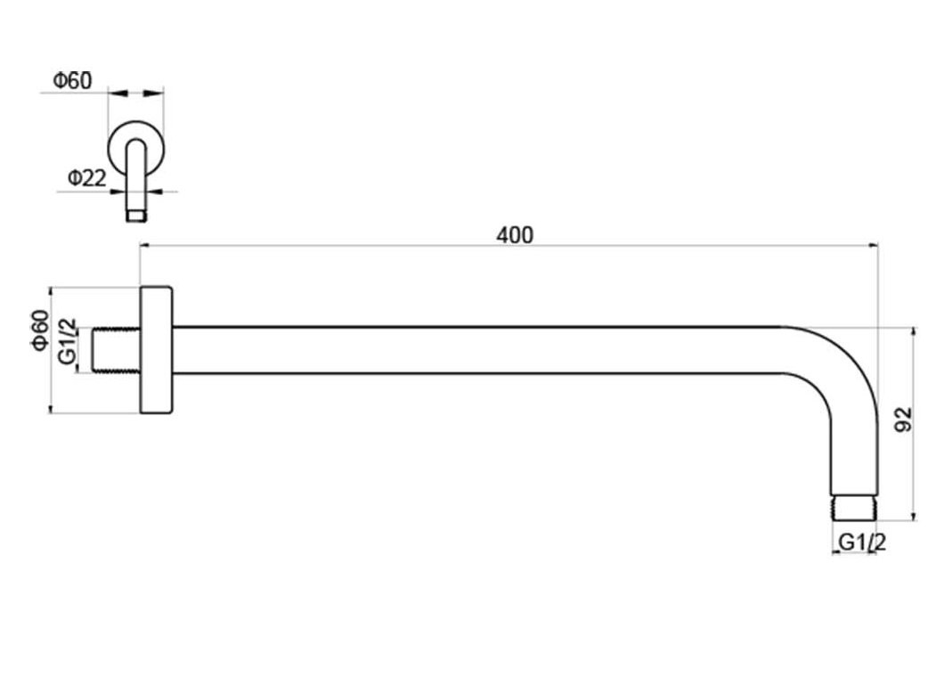 AQ2176BGM держатель верхнего душа настенный 400 мм, оружейная сталь (шлиф. черный хром)