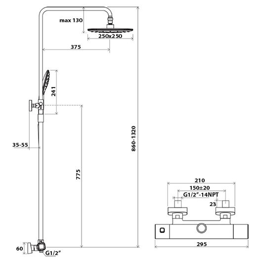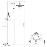 Душевая стойка с термостатическим смесителем и ручным душем TD F 091.20/150 черный