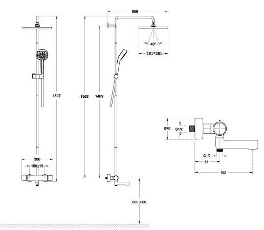 E26238-CP ATOM термостатическая душевая колонна (смеситель для ванны)