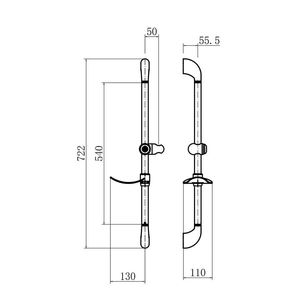 Комплектация: душевая штанга, держатель душевой лейки, мыльница;