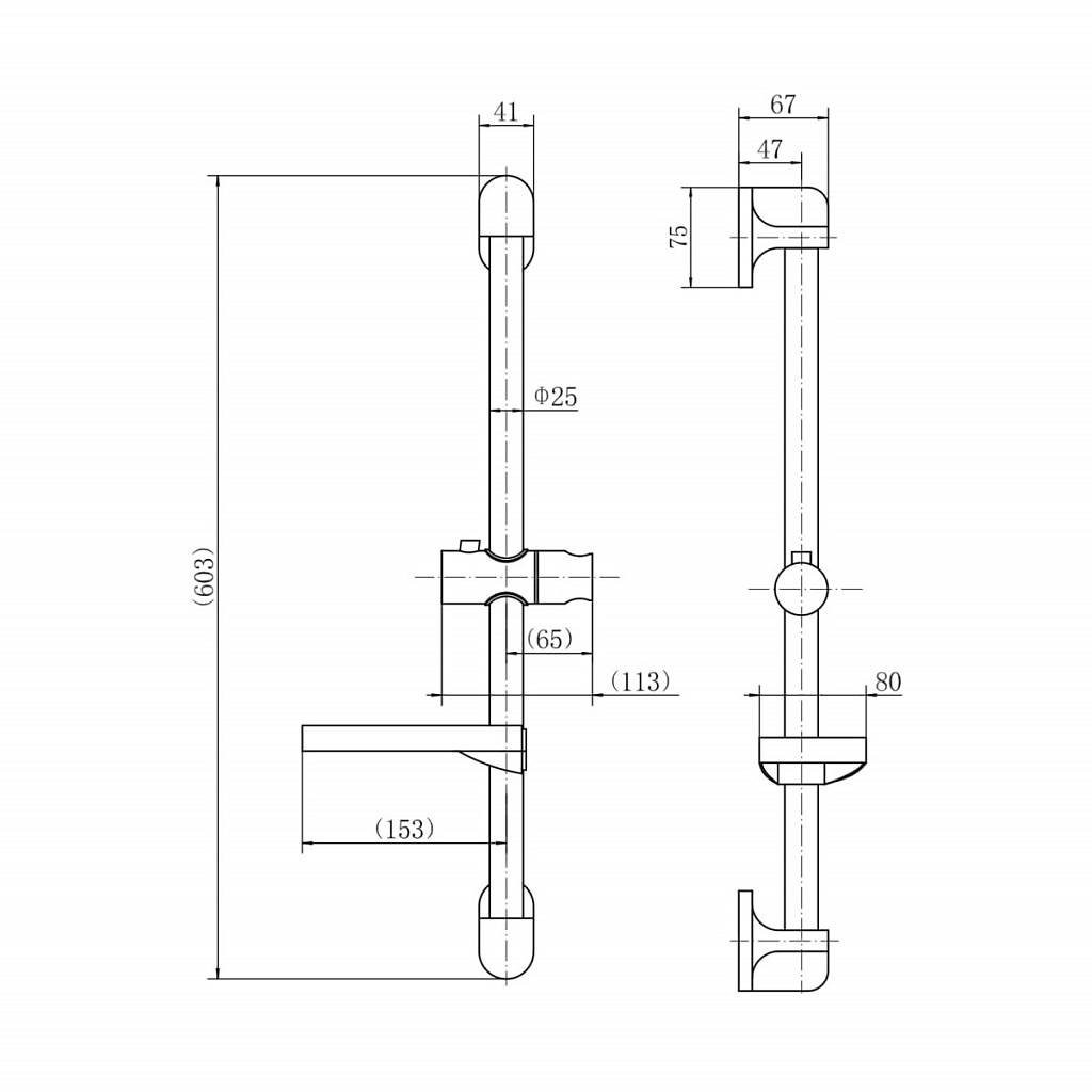 Комплектация: душевая штанга, держатель душевой лейки, мыльница;