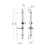штанга душевая металлическая с регулируемым держателем для лейки и прозрачной мыльницей, L=540 мм
