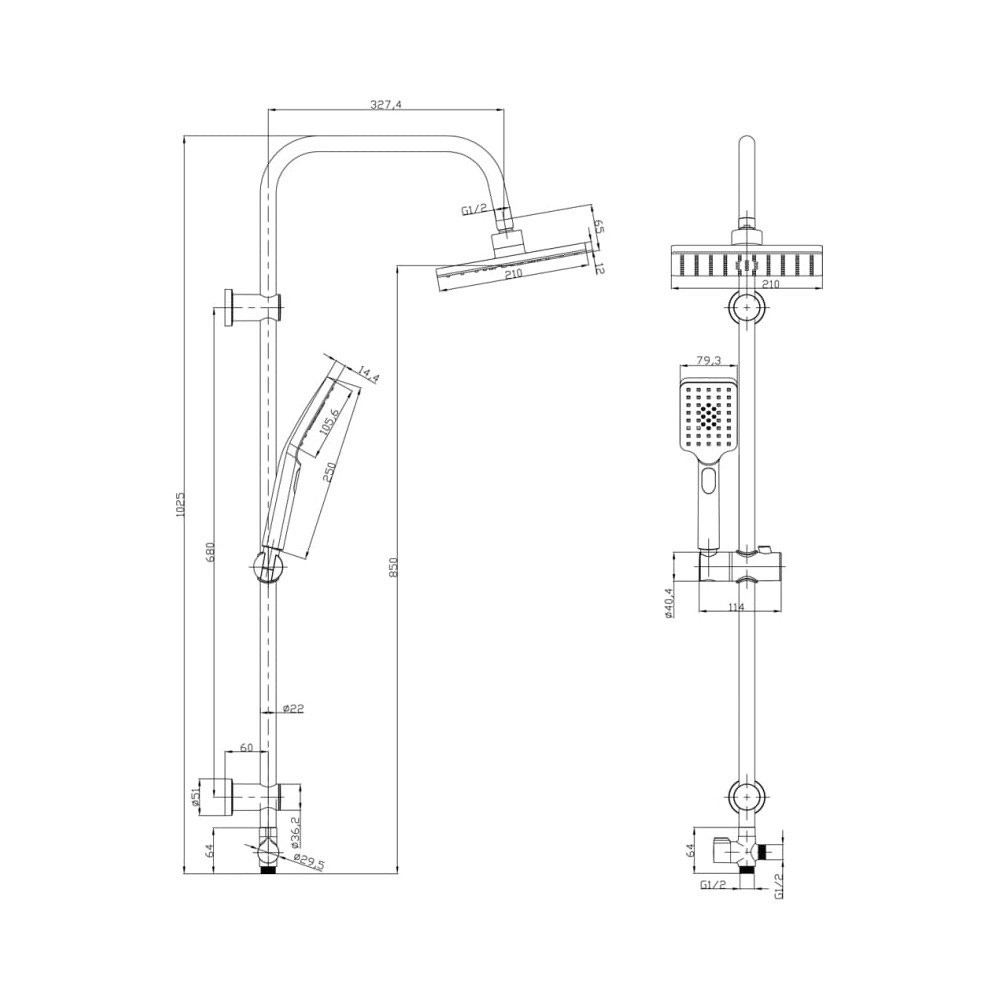 Форма верхнего душа: квадратная;