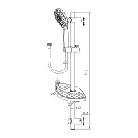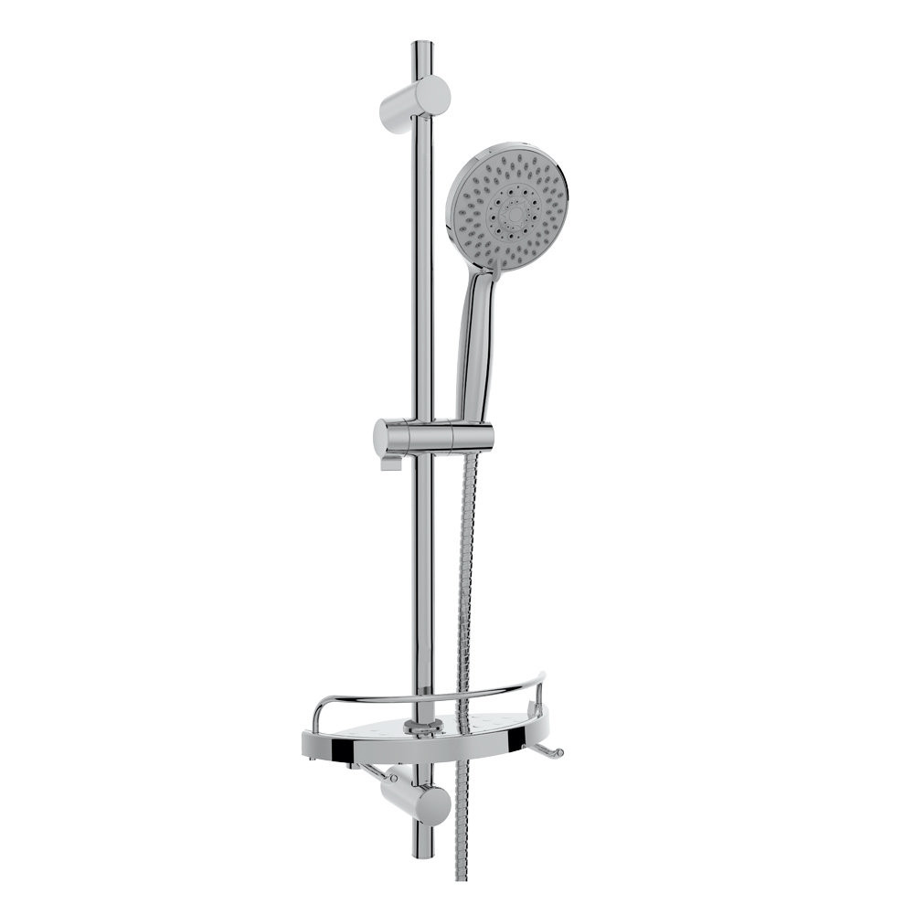 Комплектация: душевая штанга, держатель душевой лейки, полка, душевая лейка, шланг, крепление;