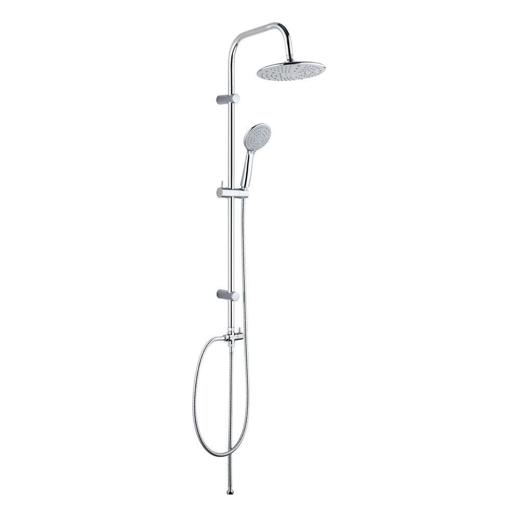 Комплектация: душевая штанга, держатель душевой лейки, душевая лейка, шланг, верхний душ, дивертор, крепление;