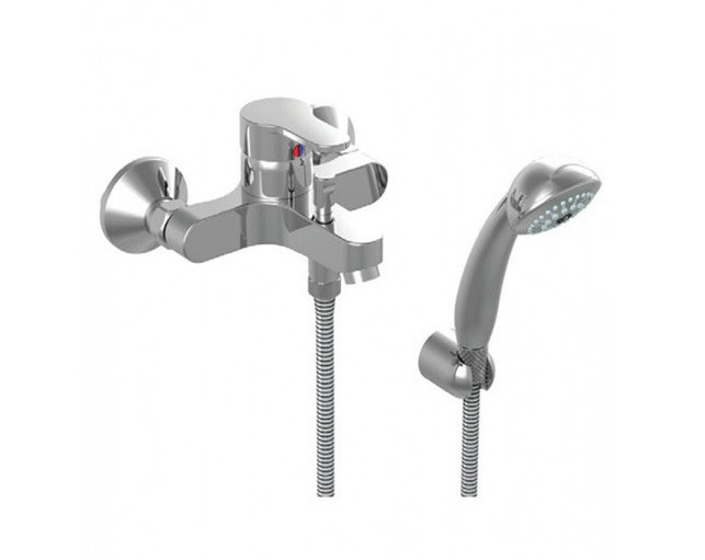 SEVAFRESH Настенный смеситель для ванны/душа однорукоятковый, картридж 47 мм CLICK, стандартный монтаж, автоматическое переключение ванна/душ, аэратор Perlator, обратный клапан. С душевым гарнитуром: лейка SevaJet S, 1500 мм шланг, держатель для лейки