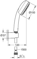 26084002 Tempesta Cosmopolitan 100 Душевой набор I (круглый ручной душ, настенный держатель, шланг 1500 мм), хром