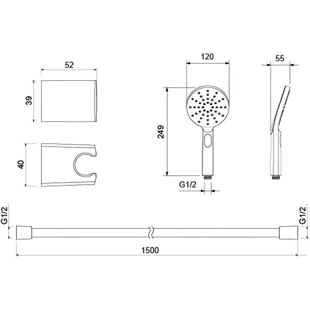 AQ2033BG ОБЕРОН душевой набор Select 120 3 jet, шлиф. золото
