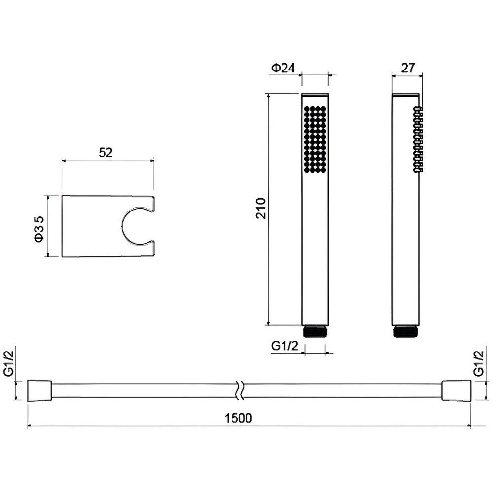 AQ2034BGM ЕВРОПА душевой набор 1jet, оружейная сталь (шлиф. черный хром)