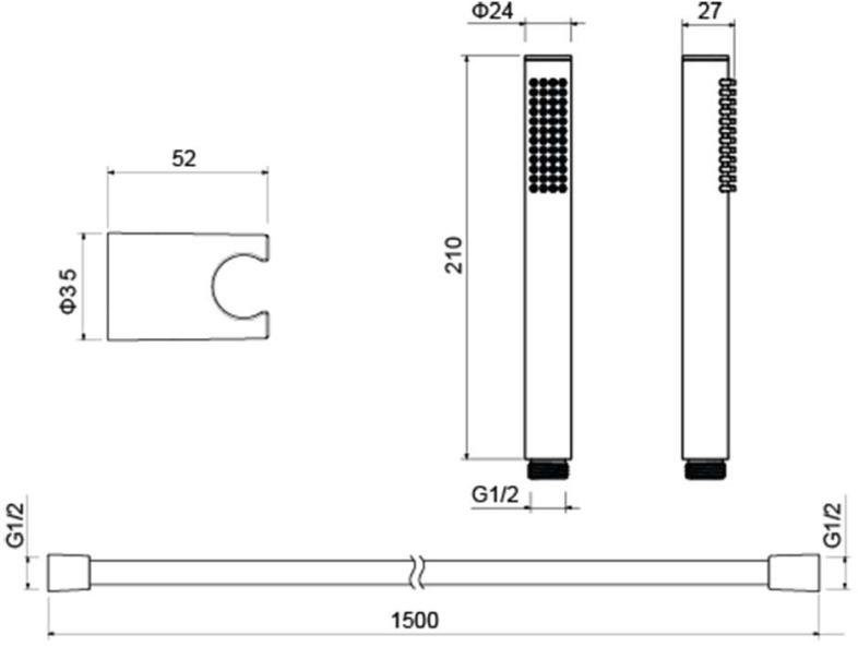 AQ2034MB ЕВРОПА душевой набор 1jet, матовый черный