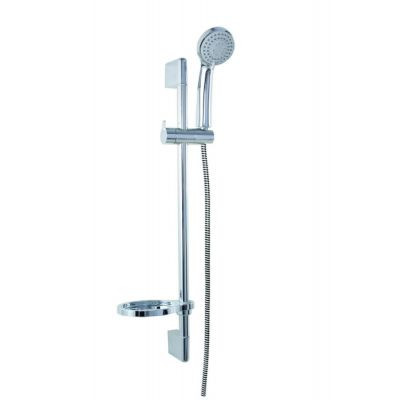 душевой комплект: штанга 22*750 мм, шланг 1,5 м ПВХ, лейка 3 режима диаметр 115,5 мм, мыльница хромированный ABS-пластик