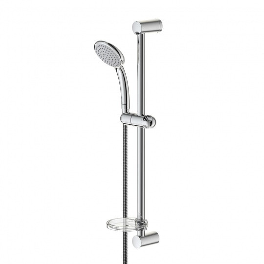 VIDIMA FRESH M Душевой гарнитур (1-функциональная лейка 100 мм, 8 л/мин., пластик, штанга 600 мм (+/-5 мм), Ø 24 мм, латунь, шланг с силиконовым покрытием Ultraflex 1750 мм, пластик, пластиковый держатель лейки, прозрачная мыльница в комплекте)