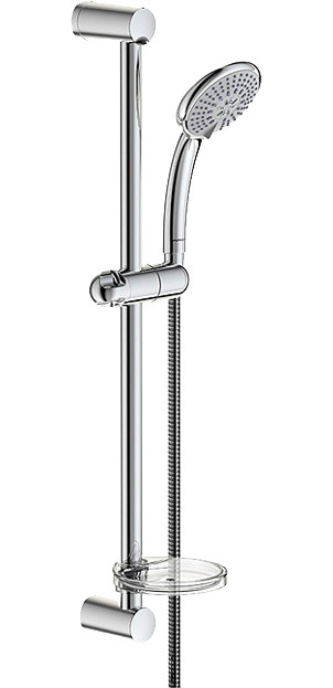 VIDIMA FRESH M Душевой гарнитур (3-функциональная лейка 100 мм, 8 л/мин., пластик, штанга 600 мм (+/-5 мм), Ø 24 мм, латунь, шланг с силиконовым покрытием Ultraflex 1750 мм (пластик), пластиковый держатель лейки, прозрачная мыльница в комплекте)